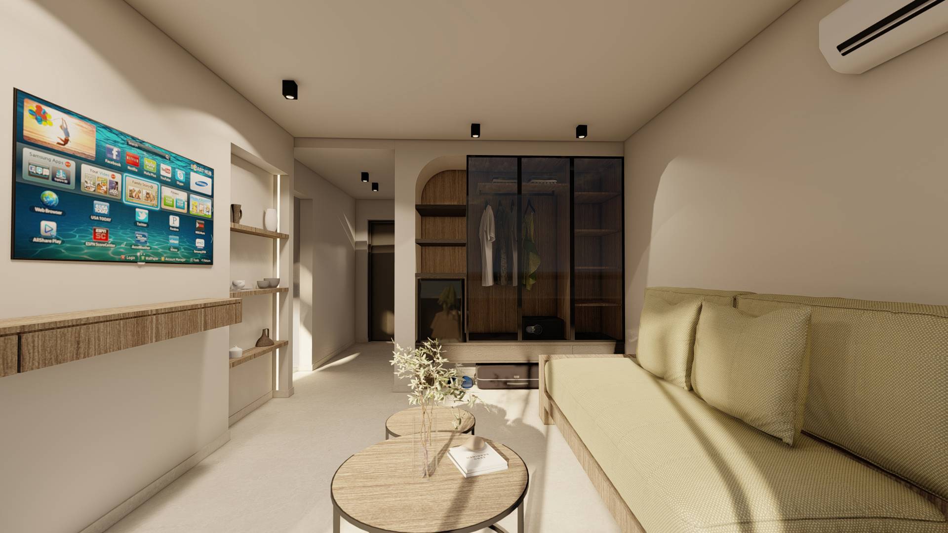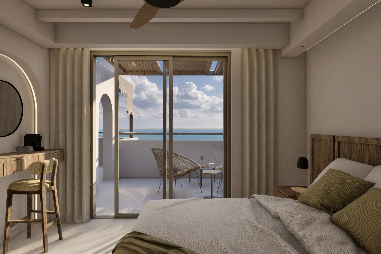 Designed for an elevated stay, the Junior Suite Sea View with Hot Tub combines modern comfort with breathtaking sea views. It features a refined bedroom, a cozy sitting area, a bathroom with shower, and a private balcony with an outdoor hot tub. Perfect for couples or special occasions, the suite promises memorable moments of relaxation under the Cretan sky.